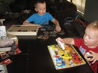 For AJ's birthday this year we decided to spread out the celebration since his birthday hit on a Thursday. So we had a lot of good fun, and then a trip to Chuck E Cheese during the weekend (a first for both boys...and yes, they are in love) and time spent with family. It seemed our little 2 year old had a really great time! :) His actual birthday included a chocolate cheerio breakfast, a trip to the park, a McDonald's happy meal lunch, lots of fun with his brother and then his favorite dinner. More fun was had over the whole extended celebration that you can see in these pictures.